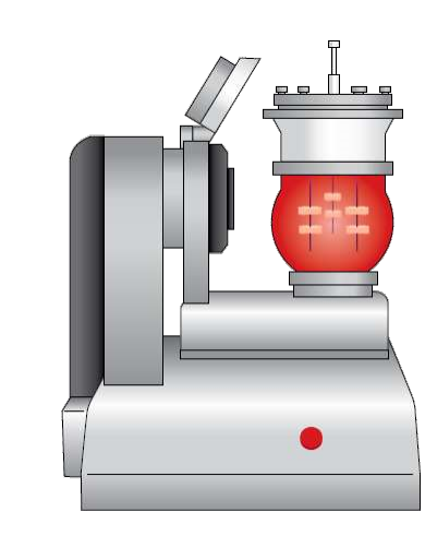The biaxial rotating mechanism involves two independent orthogonal axes (spin and tumble) within a spherical vessel design. This promotes: